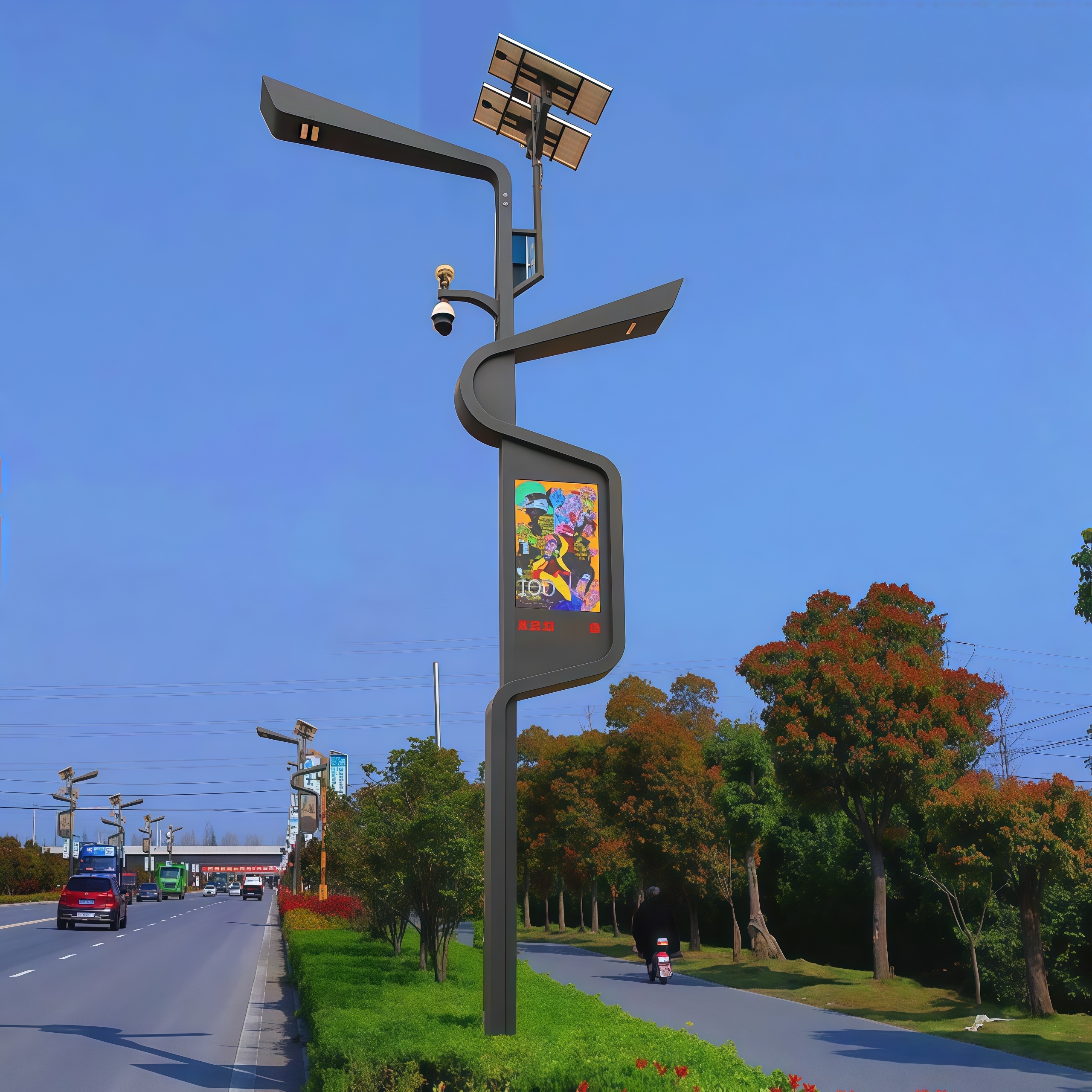 新能源汽车充电等多种功能集于一身。一根灯杆,
